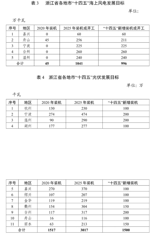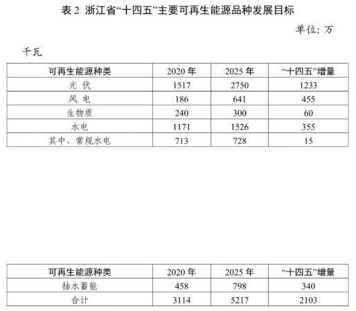 大力發(fā)展風(fēng)電、光伏,實施"風(fēng)光倍增計劃"; 更好發(fā)揮以抽水蓄能為主的水電調(diào)節(jié)作用;因地制宜高質(zhì)量發(fā)展生物質(zhì)能、地熱能、海洋能等。到 2025 年底,可再生能源裝機(jī)超過 5000 萬千瓦,裝機(jī)占比達(dá)到 36%以上。我省"十四五"主要可再生 能源品種發(fā)展目標(biāo)如下∶