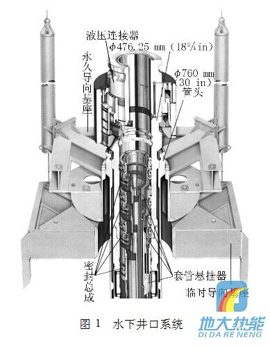 臨時(shí)導(dǎo)向基座用于定井位,是首先下入的設(shè)備,坐在海底泥線上;永久導(dǎo)向基座安裝在臨時(shí)導(dǎo)向基座之上,通過連接在導(dǎo)向柱上的導(dǎo)向繩引導(dǎo)后續(xù)工具的入井及設(shè)備的安裝;?762mm(30in)導(dǎo)管頭懸掛導(dǎo)管坐落在永久導(dǎo)向基座內(nèi),用專用下入工具隨永久導(dǎo)向基座同時(shí)下入;?476.25mm(183 /4in)高壓井口頭下部連接表層套管,坐落在導(dǎo)管頭內(nèi),通過液壓連接器連接水下防噴器;各層技術(shù)套管通過套管掛和密封總成懸掛在高壓井口頭內(nèi)。
