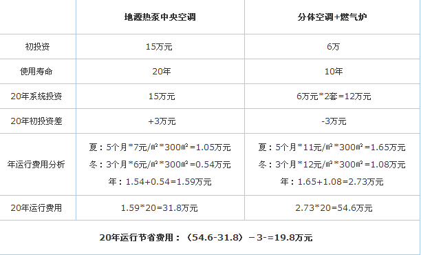 1 、初投資比較。別墅地源熱泵中央空調(diào)初投資比較機(jī)組初投資比冷水機(jī)組增加20%左右;增加打井費(fèi)用;無冷卻水塔和冷卻水系統(tǒng);無鍋爐和鍋爐房;無入網(wǎng)費(fèi)(天然氣、城市熱力網(wǎng));無儲(chǔ)油罐安全費(fèi)。