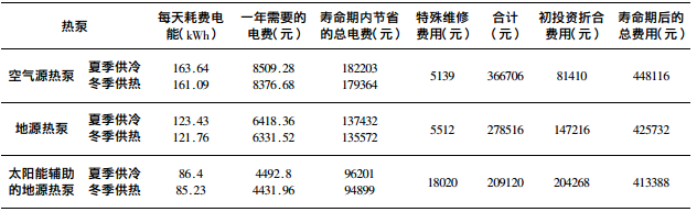 調(diào)查表明,在整個壽命期之內(nèi),一般使用者都會更換一次壓縮機,按照研究的數(shù)據(jù),為了提高整個系統(tǒng)的效率,壓縮機大多在壽命期的第14年更換,使用更高效昂貴的壓縮機。地大熱能地源熱泵事業(yè)部專家認為考慮到本文研究的熱泵系統(tǒng)冷量接近,認為更換壓縮機對于費用比較不產(chǎn)生影響。