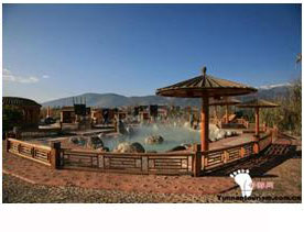 云南下關(guān)溫泉風(fēng)景明童軒《德勝關(guān)溫泉》詩云:蒸蒸本元?dú)?,澡雪人?zhēng)浴。雖無澤物功,遠(yuǎn)勝貪泉屈。大理下關(guān)溫泉在山谷之中,背依附者摩山,峭石噻巖壁立,面臨大理西洱河岸,河水洶涌奔騰;庭院之中,設(shè)有大理亭閣游廊,遍植花木,四季花香,環(huán)境幽雅,景色宜人,下關(guān)溫泉是人們休假療養(yǎng)的場(chǎng)所。