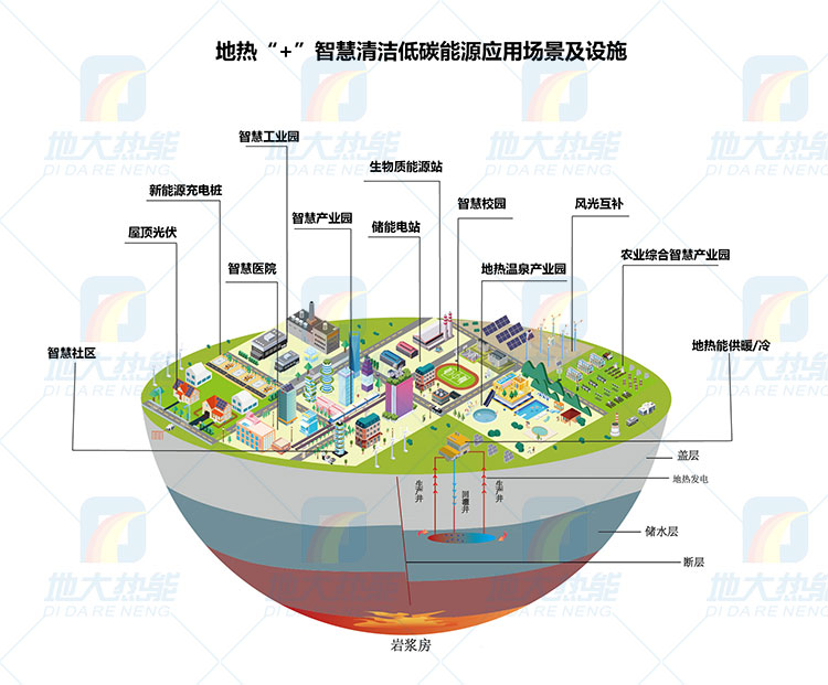 地?zé)?/span>+(風(fēng)能、太陽(yáng)能、氫能、儲(chǔ)能、水能、生物質(zhì)能等)新能源,根據(jù)因地制宜、多能互補(bǔ)實(shí)現(xiàn)能源綜合開發(fā)利用。